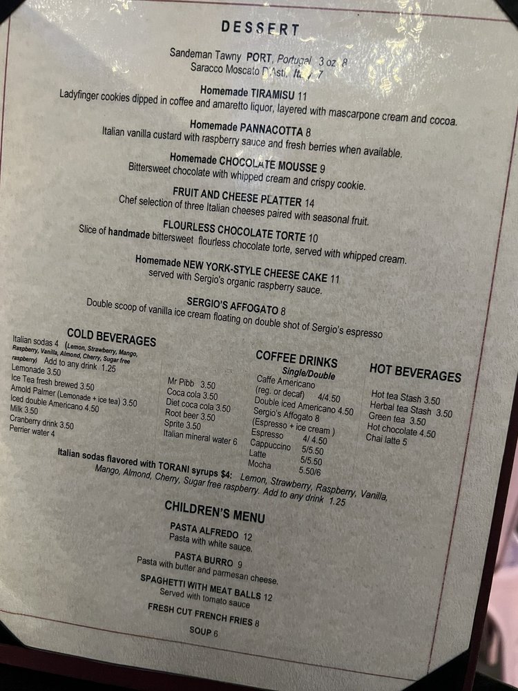 Welcome to Sergio Caffe, an Italian gem nestled in Grass Valley, CA. This charming eatery boasts a menu that beautifully captures the essence of Italian cuisine, offering dishes crafted with fresh ingredients and authentic flavors. Whether you're in the mood for a hearty pasta or a light, vegan option, Sergio Caffe caters to all palates.